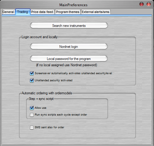 Via the Program properties menu, a dialog opens where different settings are managed. Click the Trading to open the following page.
