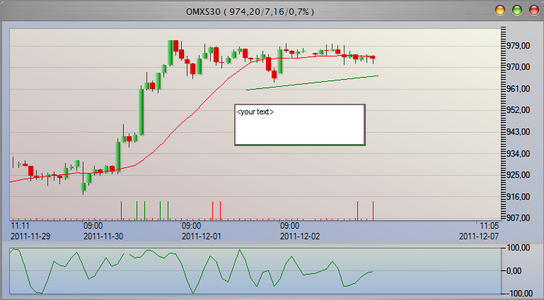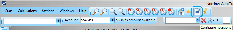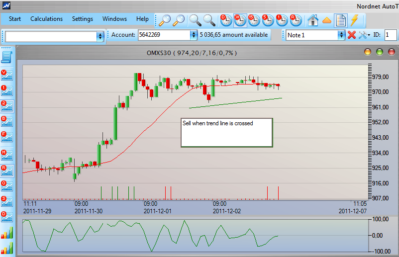 You can make notations in the chart, for example to keep track of different things that the model is connected to the particular instrument or any action which is set for Trend Entry etc.. To make a notation in a chart, you mark the first chart and then click on the icon for a note on the toolbar:
